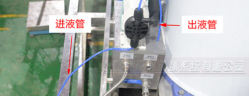 按啟動/停止按鈕啟動片冰機,按上面加鹽比例加鹽,再把鹽水桶加滿水并攪拌均勻,然后將鹽水泵進液管放進鹽水桶。