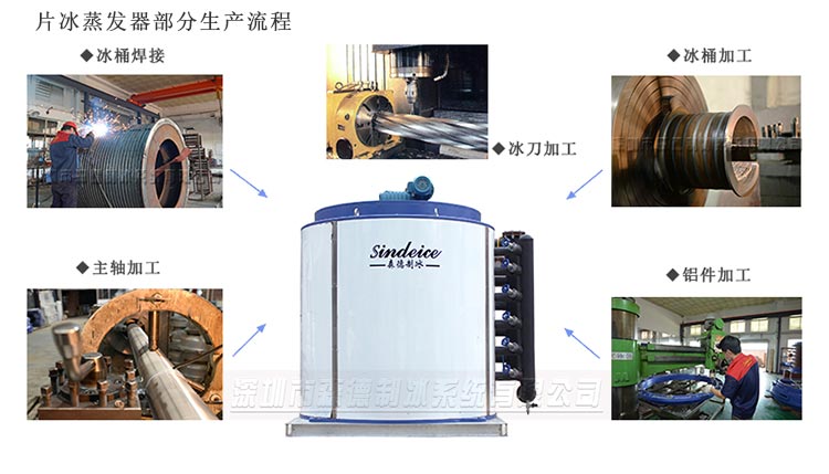 1.片冰機(jī)蒸發(fā)器,根據(jù)客戶的制冰環(huán)境和產(chǎn)冰需求,可以通過不同材質(zhì)的蒸發(fā)器實(shí)現(xiàn)。